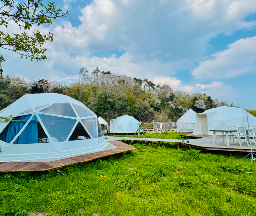 旧野蒜小学校そばの竹林に囲まれたグランピング場。