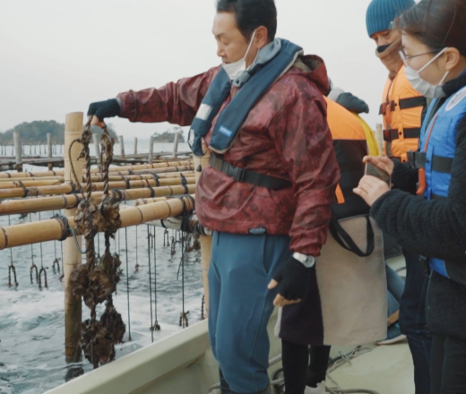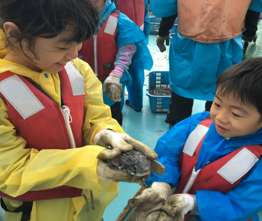 追い込み漁など松島湾の伝統漁法を体験し、獲った魚を調理して味わう食育プログラム。