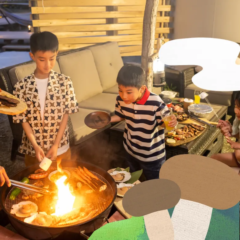 炭火を囲みながら、家族や仲間と過ごすゆったりとした時間もごちそうのひとつ。