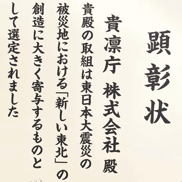 「新しい東北」復興・創生の星顕彰を受賞しました