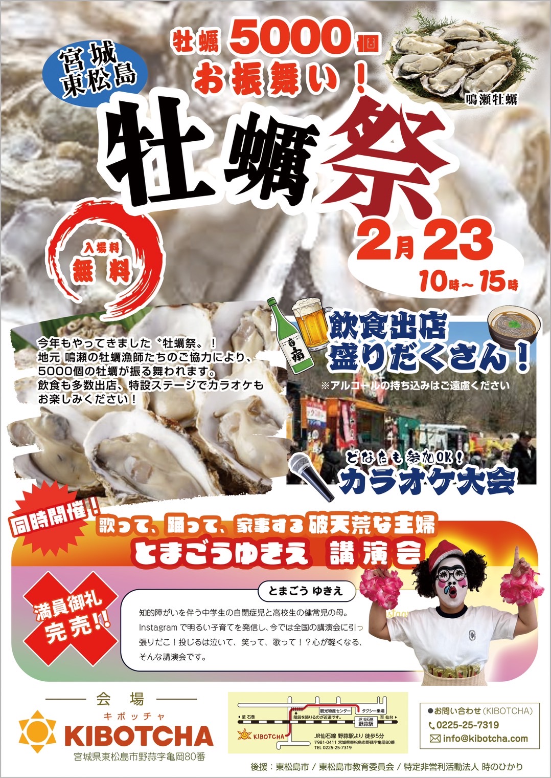 東松島の冬の味覚を堪能する「牡蠣祭り」を企画運営しています。